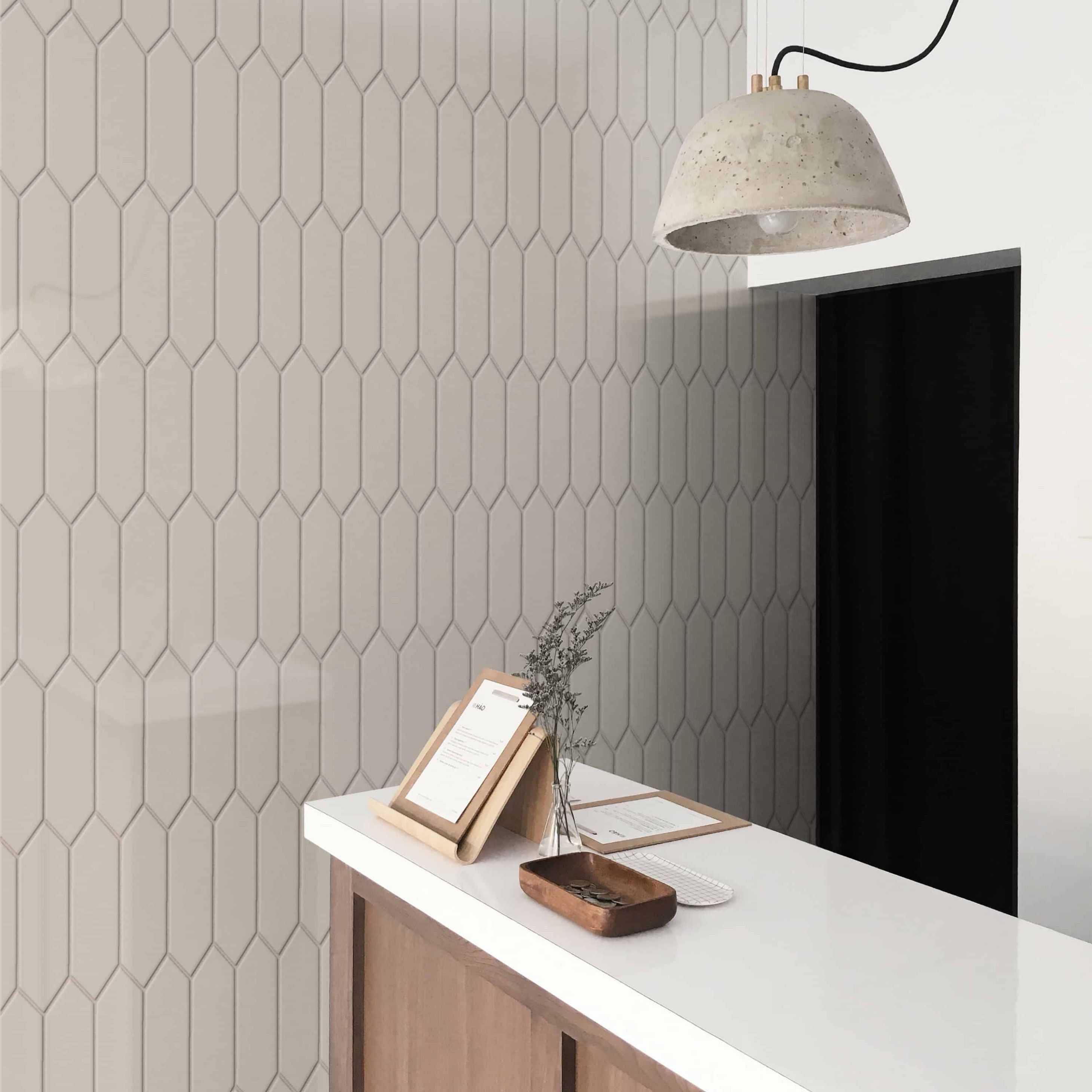 The unique shape of Wind ceramic tiles combined with a glossy finish brings a gust of originality to any room. Use over a large surface or to create an accent wall for a decidedly daring touch to your décor.