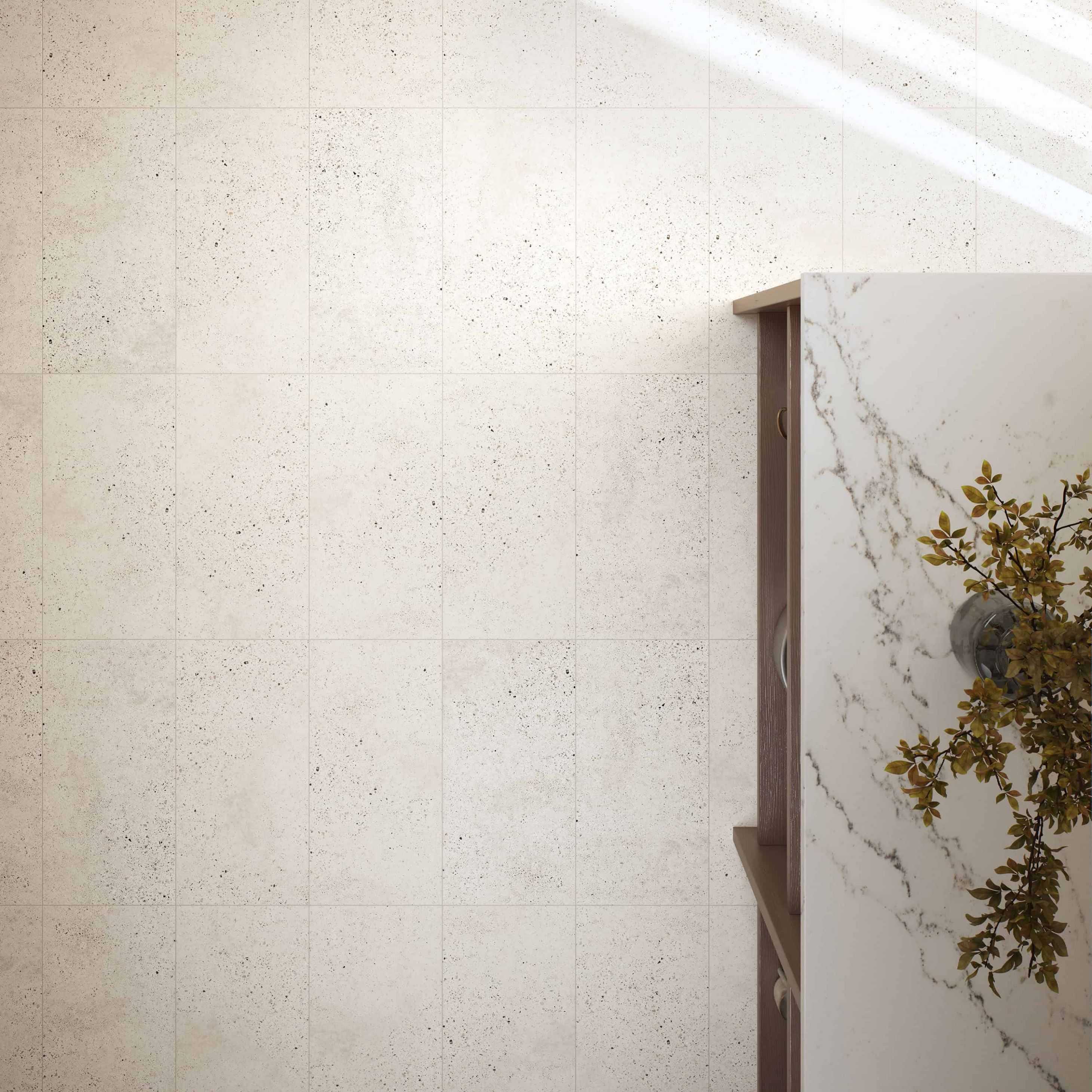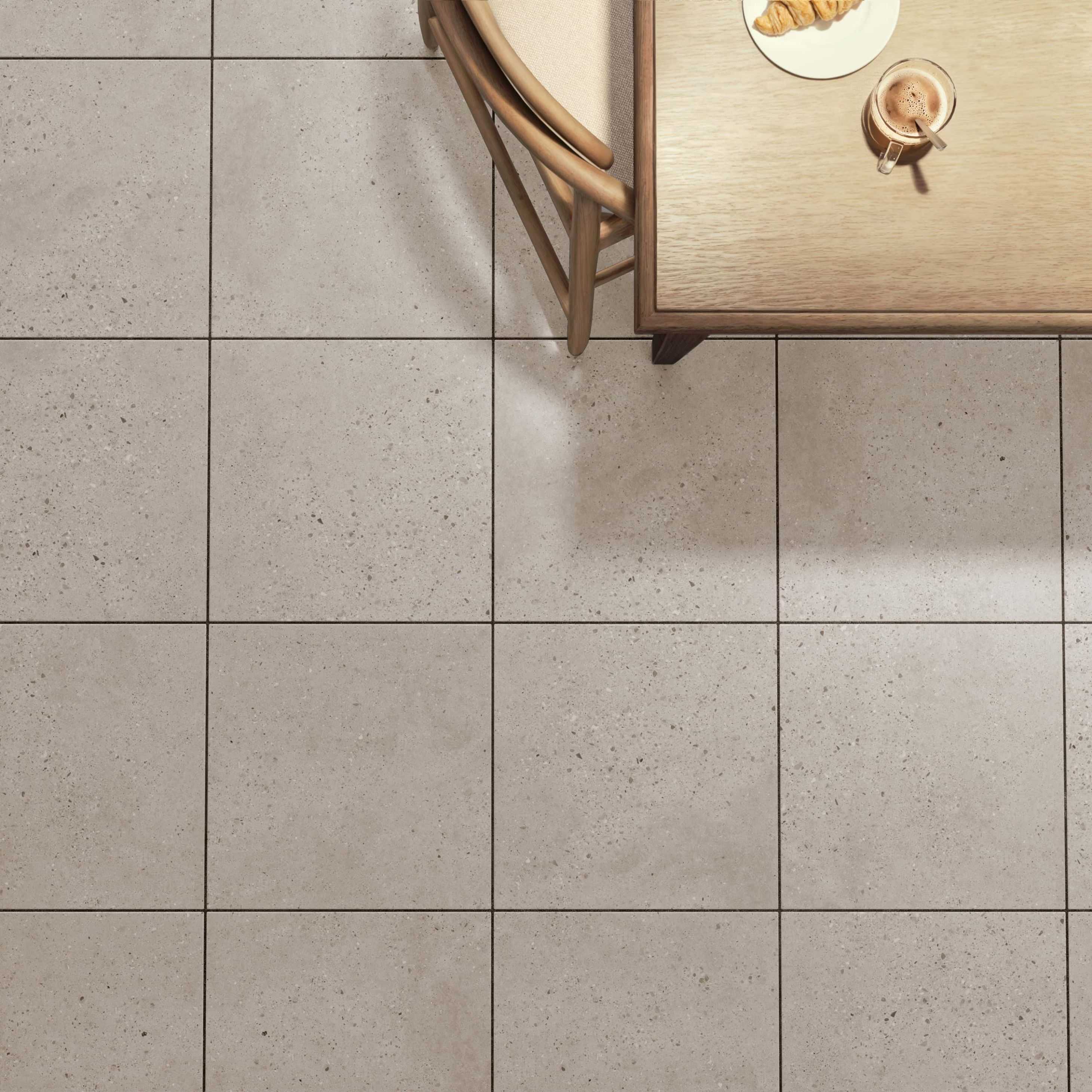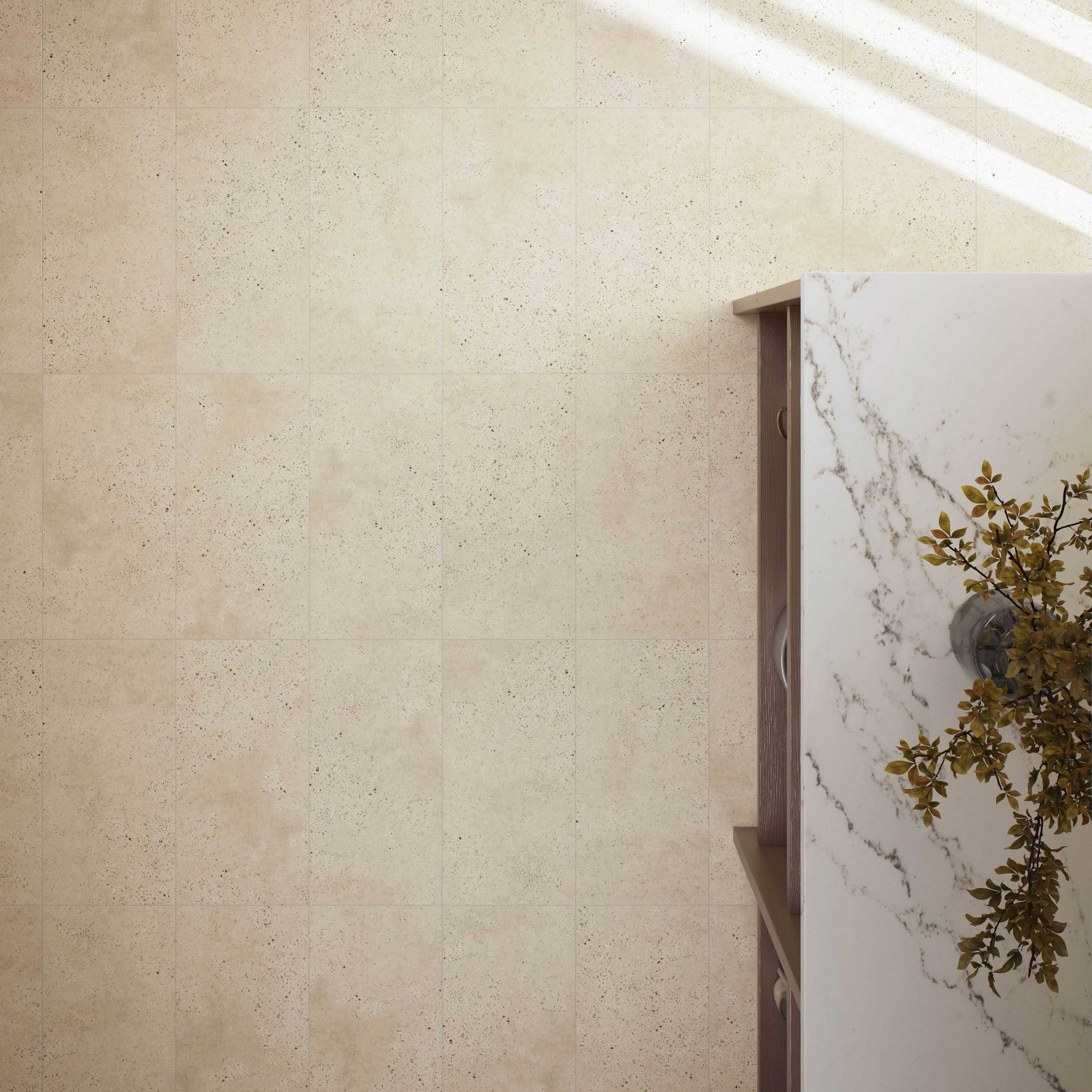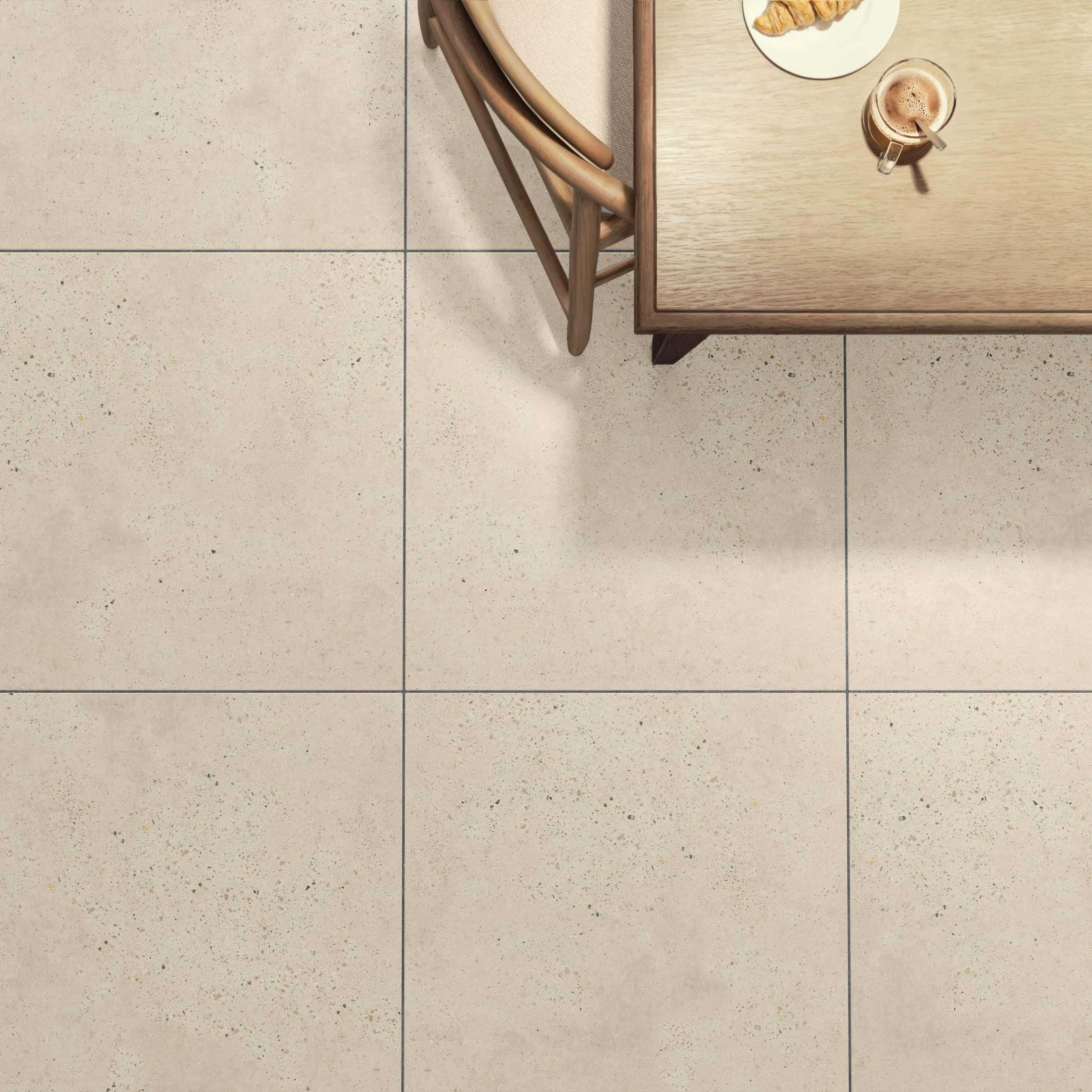 Inspired by the Milky Way, the Cassio series recalls the effect of cement with its tiles sprinkled with subtle colored aggregates, like constellations. Available in four neutral shades, this glazed porcelain will bring movement and depth to your spaces. With Cassio, you're guaranteed a harmonious and unique decor.