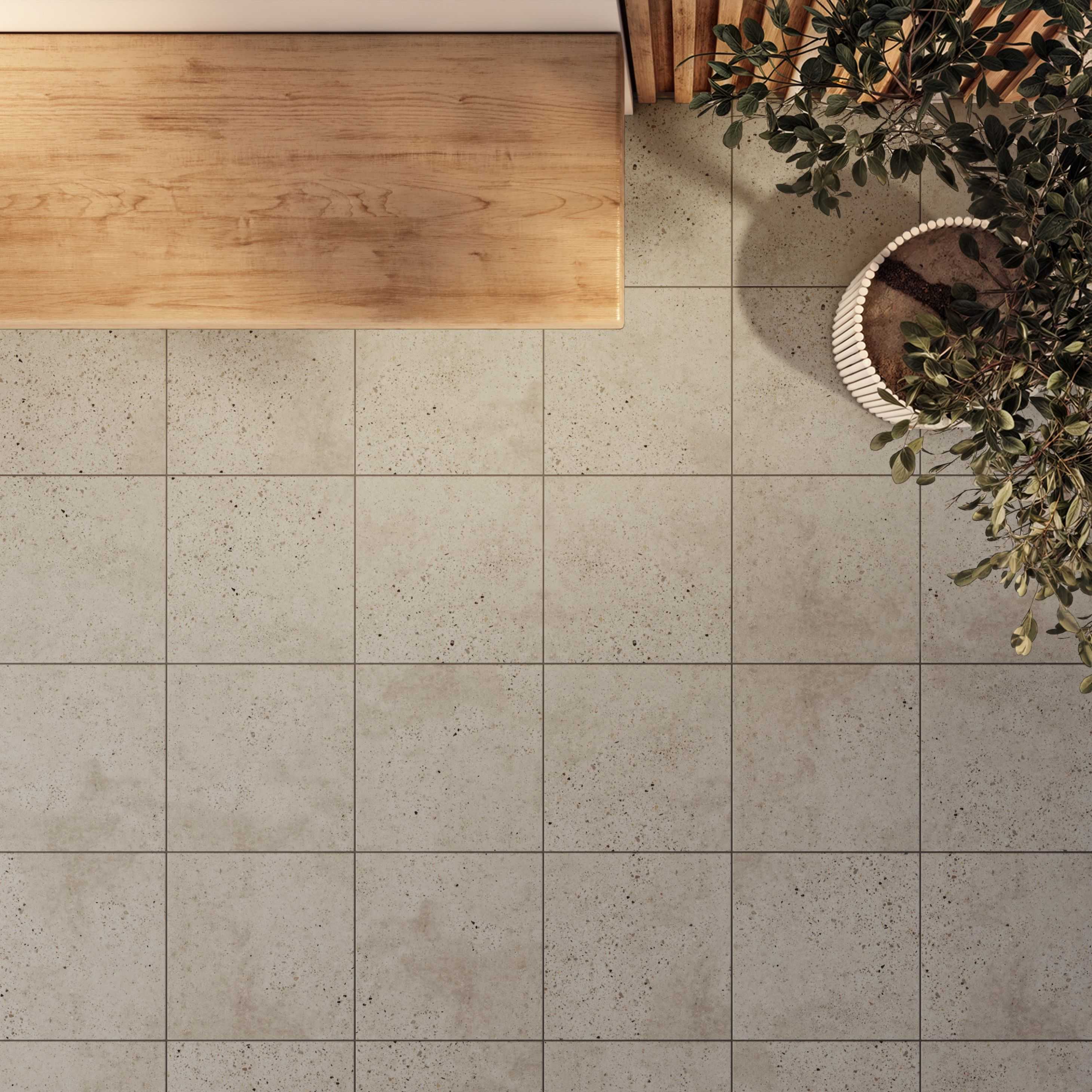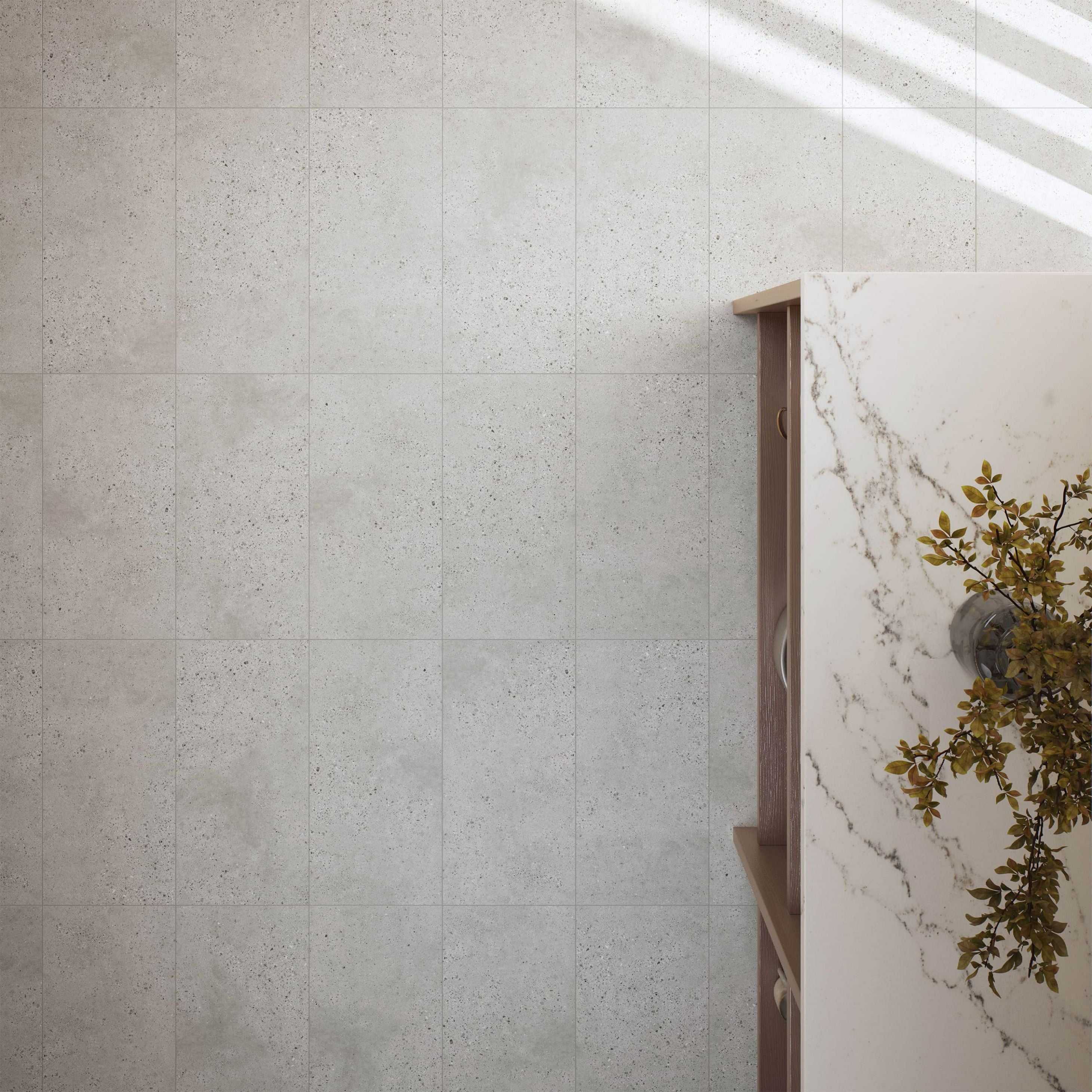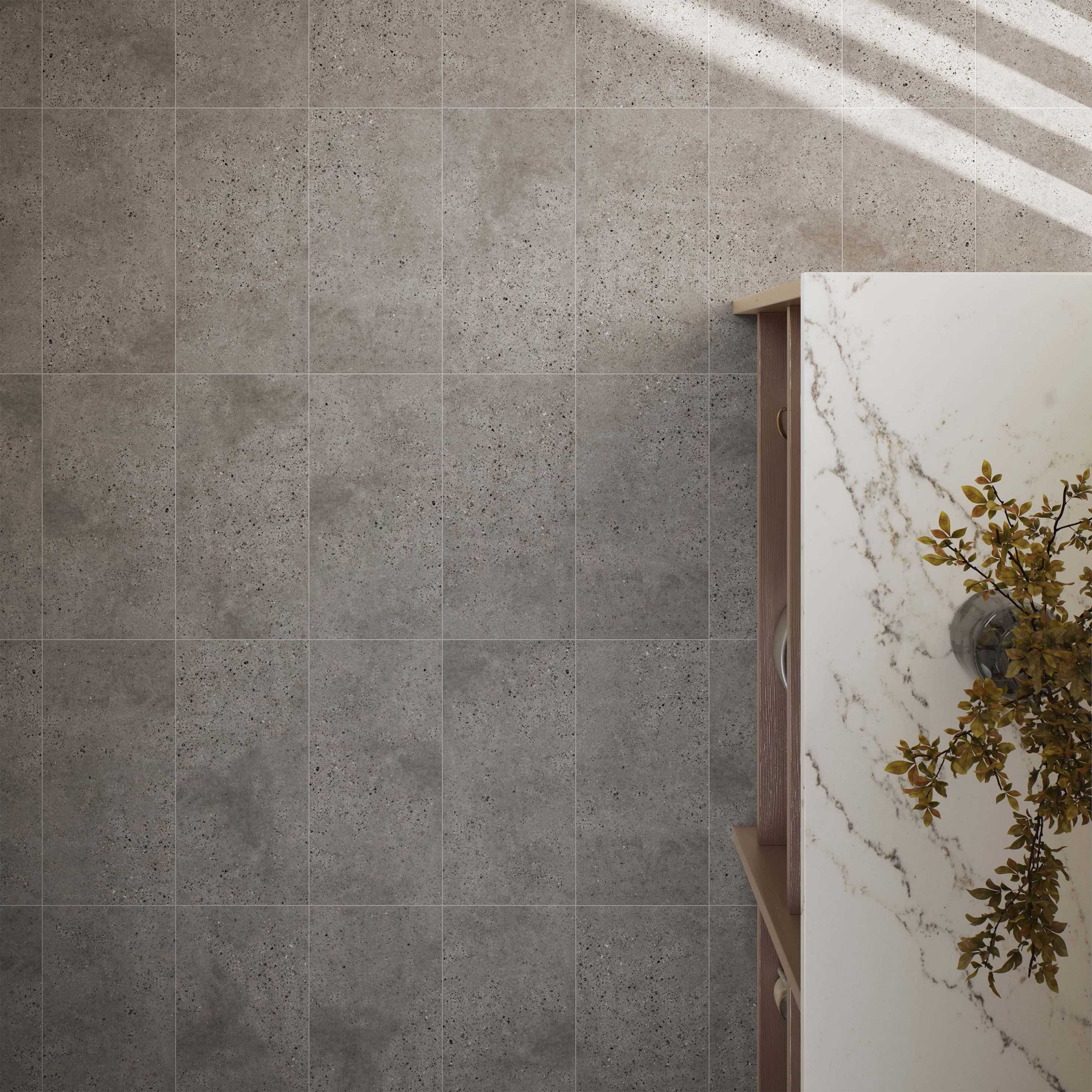 Inspired by the Milky Way, the Cassio series recalls the effect of cement with its tiles sprinkled with subtle colored aggregates, like constellations. Available in four neutral shades, this glazed porcelain will bring movement and depth to your spaces. With Cassio, you're guaranteed a harmonious and unique decor.