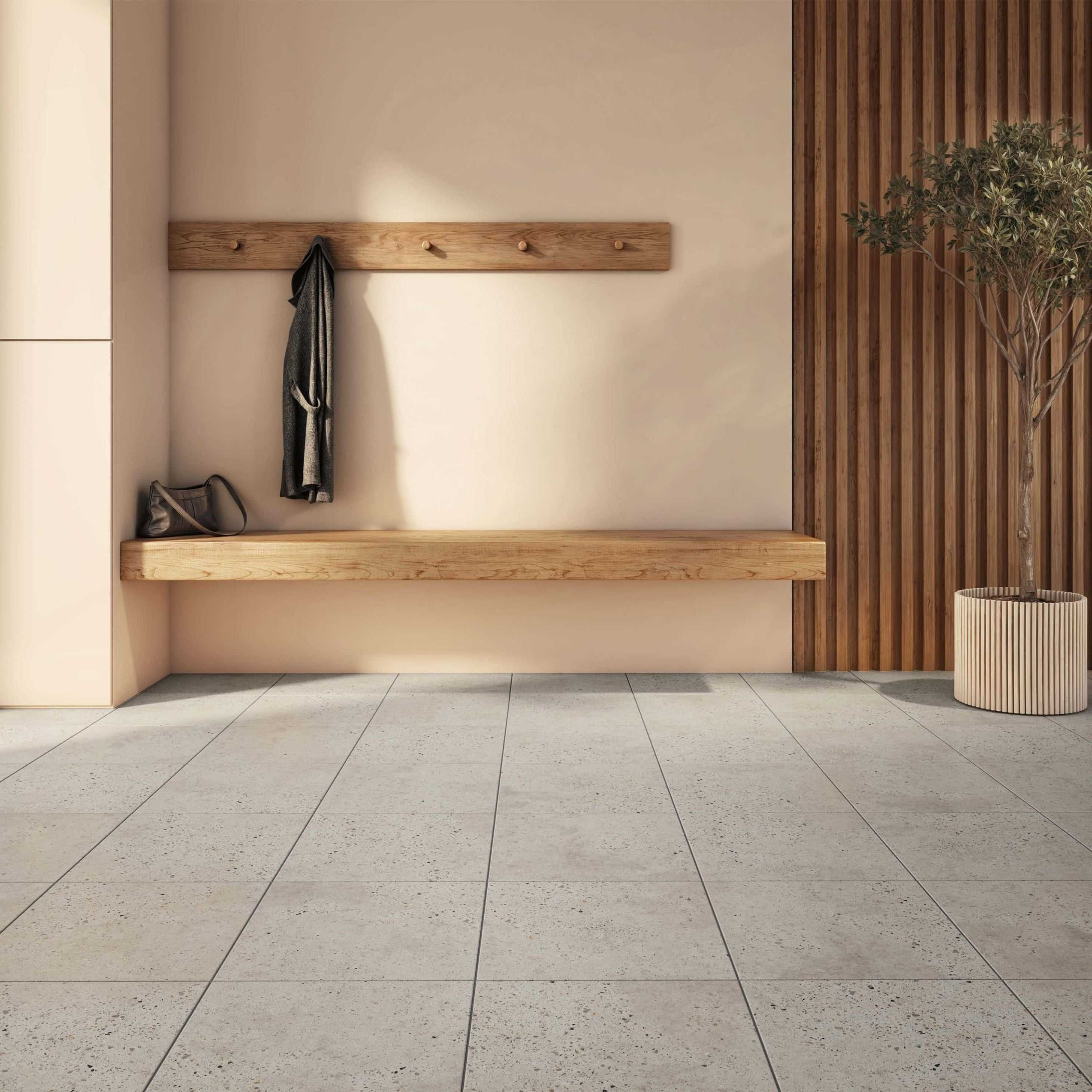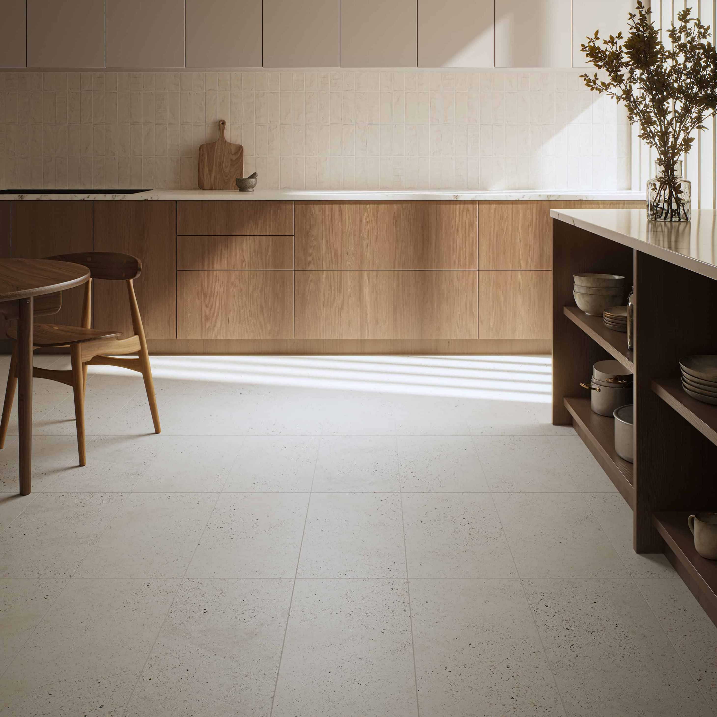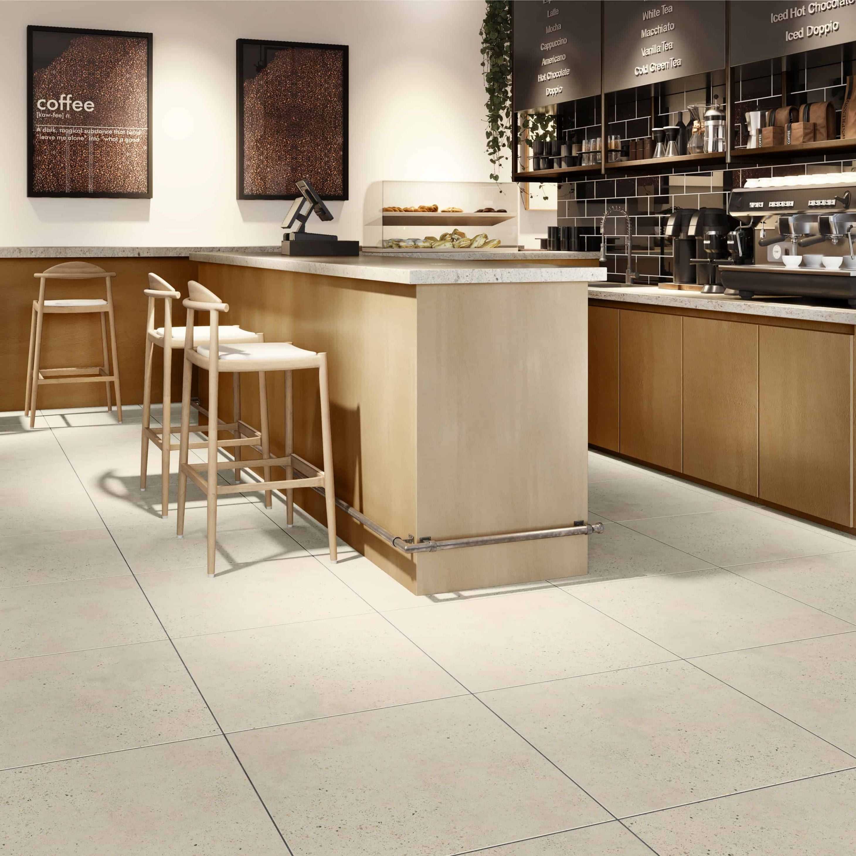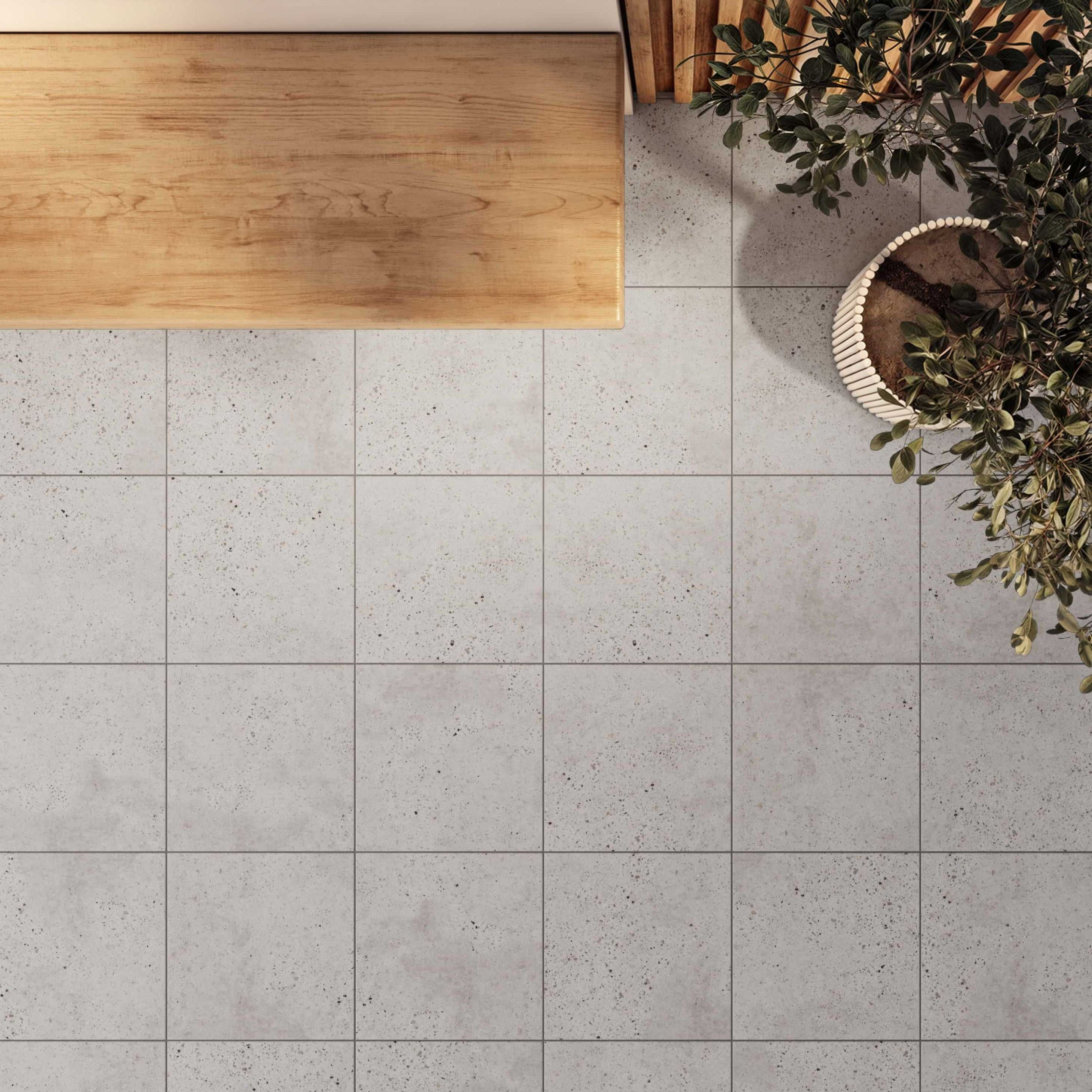 Inspired by the Milky Way, the Cassio series recalls the effect of cement with its tiles sprinkled with subtle colored aggregates, like constellations. Available in four neutral shades, this glazed porcelain will bring movement and depth to your spaces. With Cassio, you're guaranteed a harmonious and unique decor.