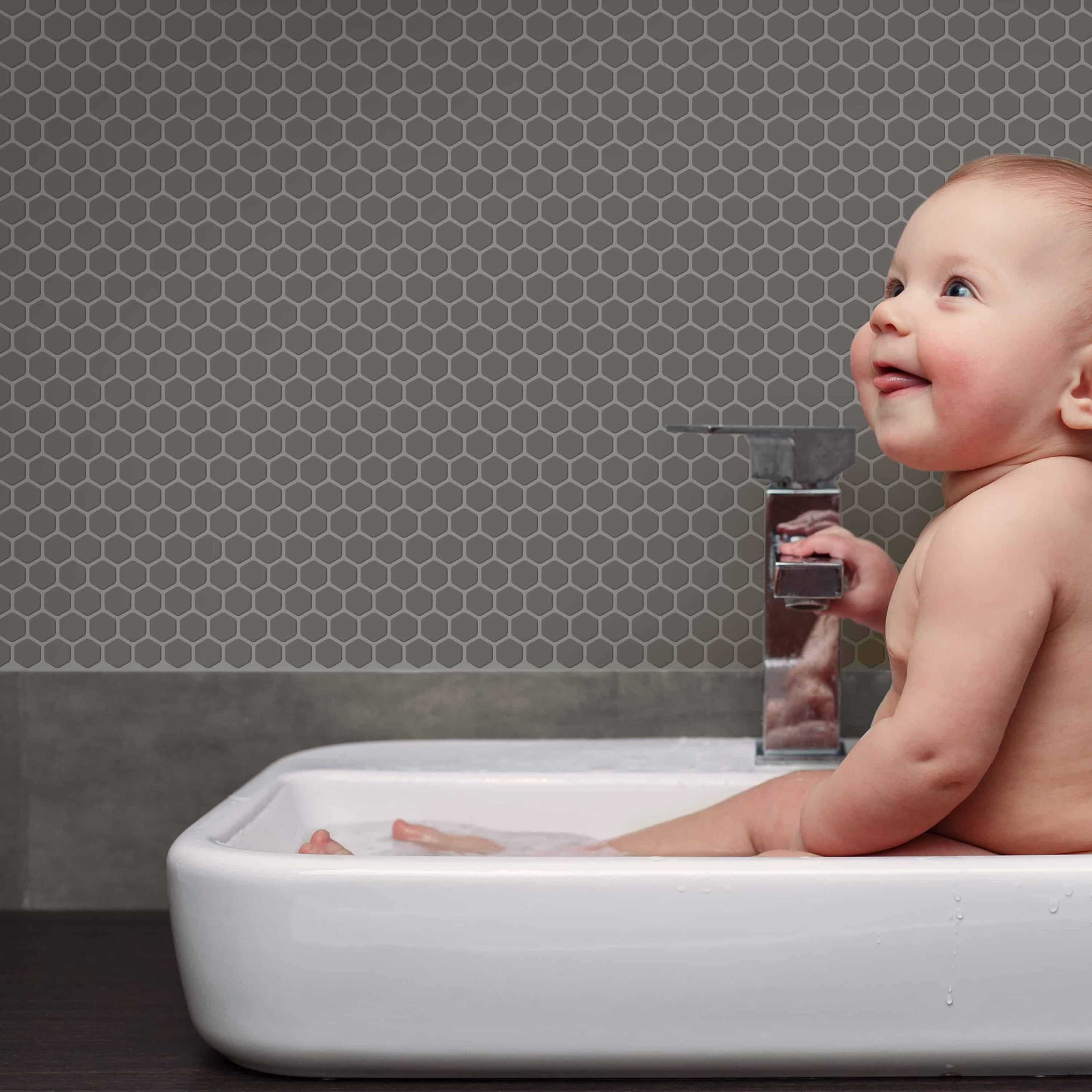 Honeycomb-shaped Precious tiles are made from recycled glass and create dazzling effects in any space. Their matt finish adds a simple but elegant touch of refinement, with results that will impress whether using grout of the same or a contrasting colour.