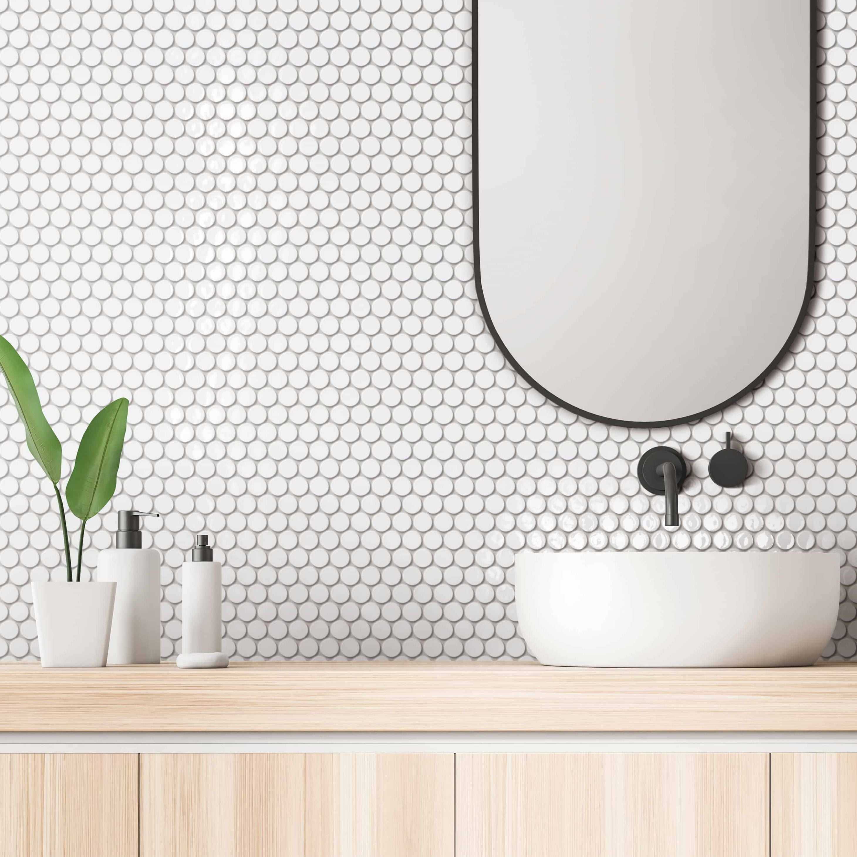 Retour d’un classique, la mosaïque Virgo amène une touche rétro grâce à sa petite forme de penny offerte en quatre couleurs. Combinez l’originalité de sa forme à l’élégance de ses tons neutres et doux.